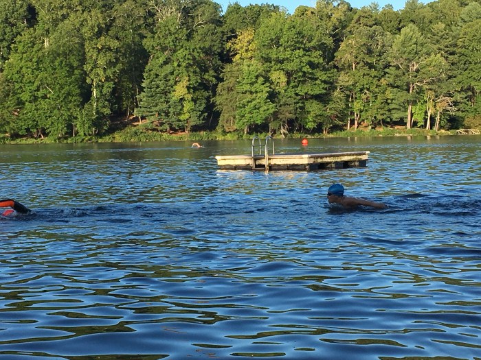 Last Saturday we had our highest number at a Biltmore Lake open water workout ~ 20 swimmers enjoying the beautiful morning, perfect lake (79F) and air (67F and climbing) conditions!