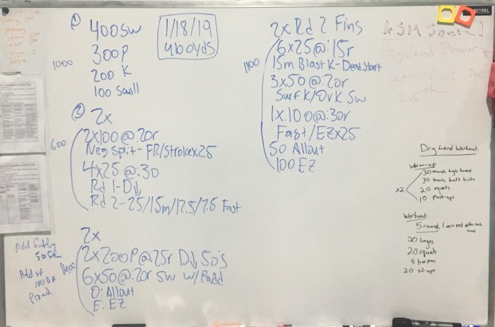 Mark S., Andrew P., Marty M. and Steve B. had a chance to race the 200-yard medley relay against the local high school kids and we swam a time that would’ve been eighth in the nation for USMS last year in our age group. Mark and Marty swam a few individual events, too!
