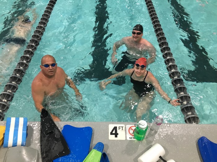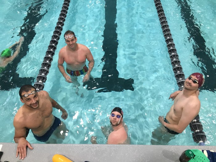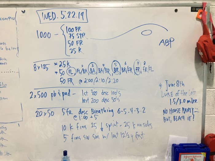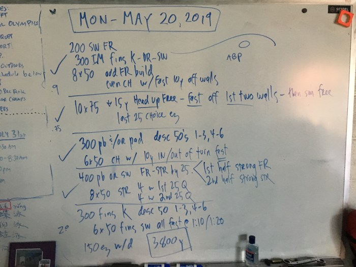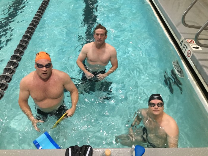 A wonderfully crowded pool this week, regular times for our workouts on Saturday, Sunday and Monday on this Memorial Day weekend, and we say goodbye π to Daniel for five weeks while he’s at various college swim camps helping out! Thanks, Dude!