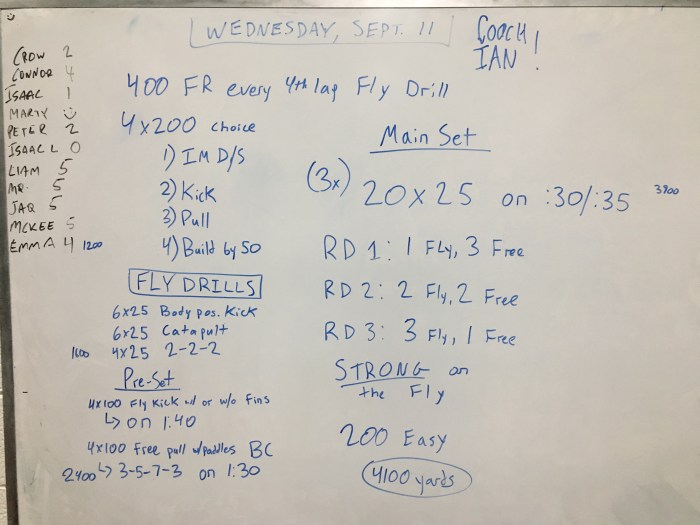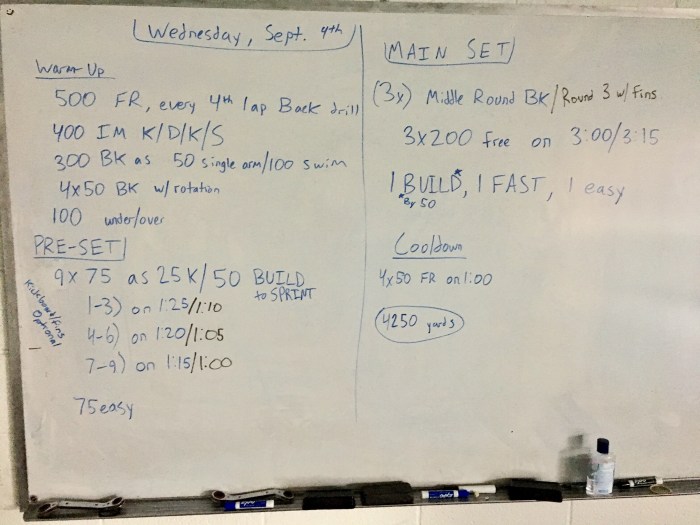 Here are workouts for the first two weeks of September, and thanks again to Ian Quinn who has been on deck the last month once a week, we are really enjoying a different perspective, keep it up!