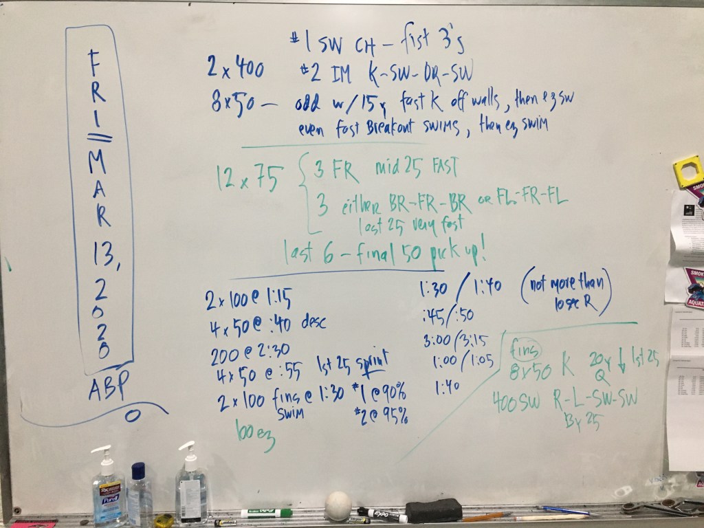 Many of you belong to YMCA’s or other gyms. Wherever you end up swimming in the next few weeks please send me a pic of you in or at the pool, tell us what pool it is, how far you swim, the water temperature and how much it cost.