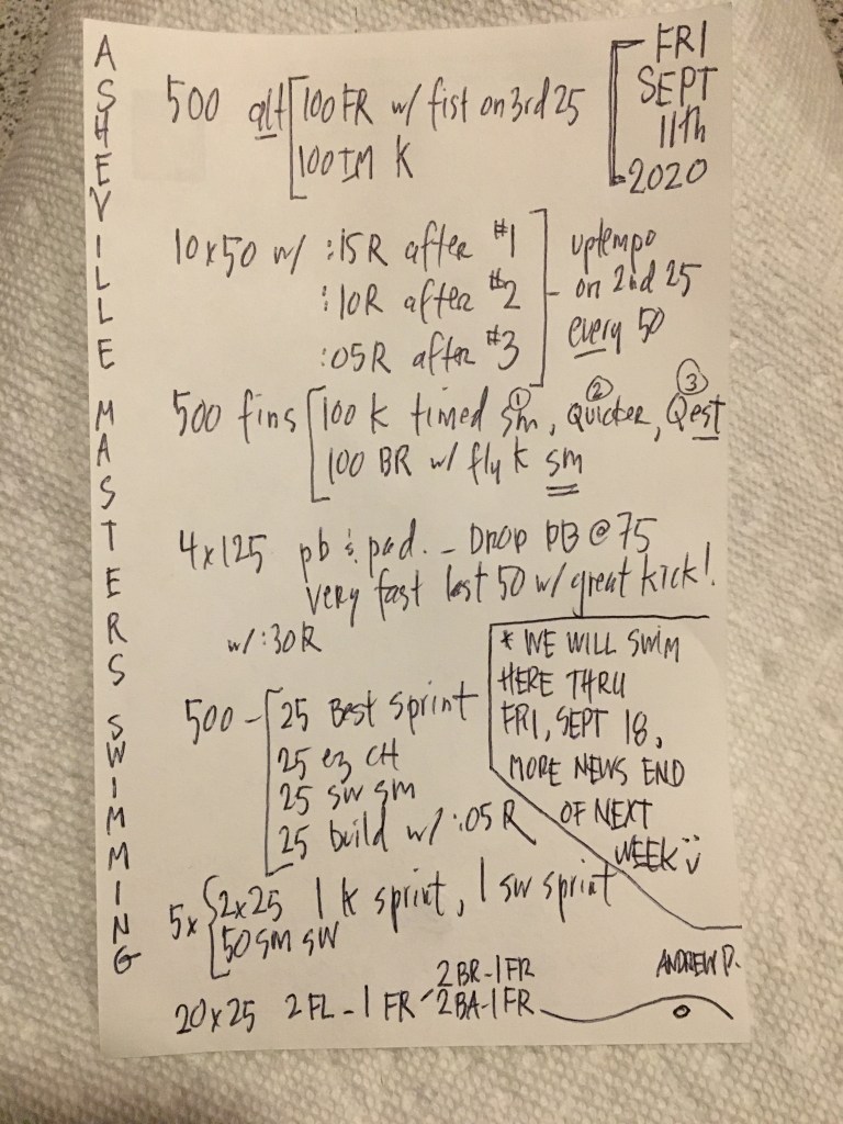 We will remain swimming at the Buncombe County School’s Pool at TC Roberson HS at least through the end of next week, September 18. Asheville School remains committed to keeping their campus healthy and they are taking every precaution-more news from them next week. Fingers crossed for our club’s return there!