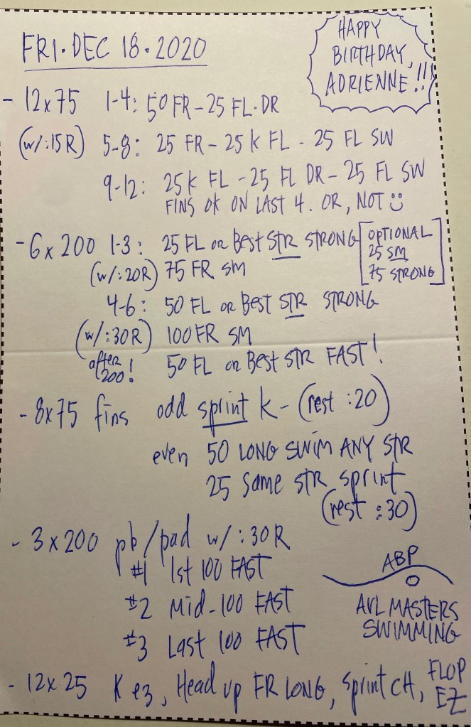 55 Friday 55 Friday 55 Friday Posted on December 17, 2020 by ashevillemasters in Uncategorized December 18, 2020 begs you to give yourself the gift of a swim! Happy Birthday Adrienne! Share this: Click to share on X (Opens in new window) X Click to share on Facebook (Opens in new window) Facebook More Click to share on Reddit (Opens in new window) Reddit Like Loading... Related Published by ashevillemasters View all posts by ashevillemasters