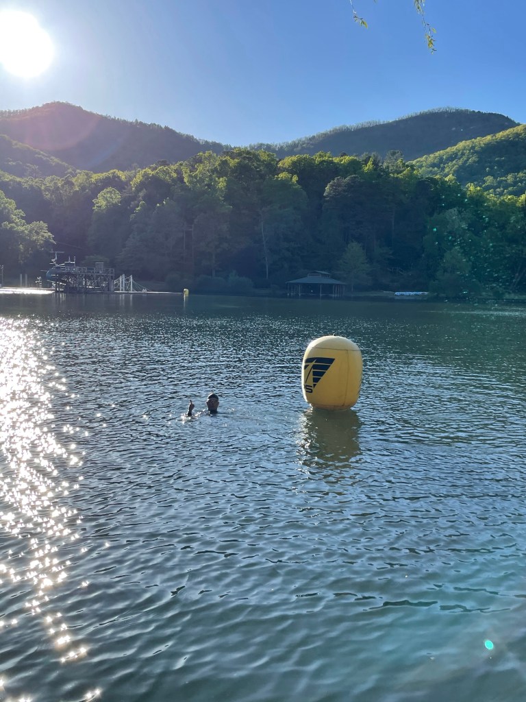 We swam a boomerang shape of about 750m around it was so nice to be back in this lake, as it’s been at least 5 years since my last swim here.