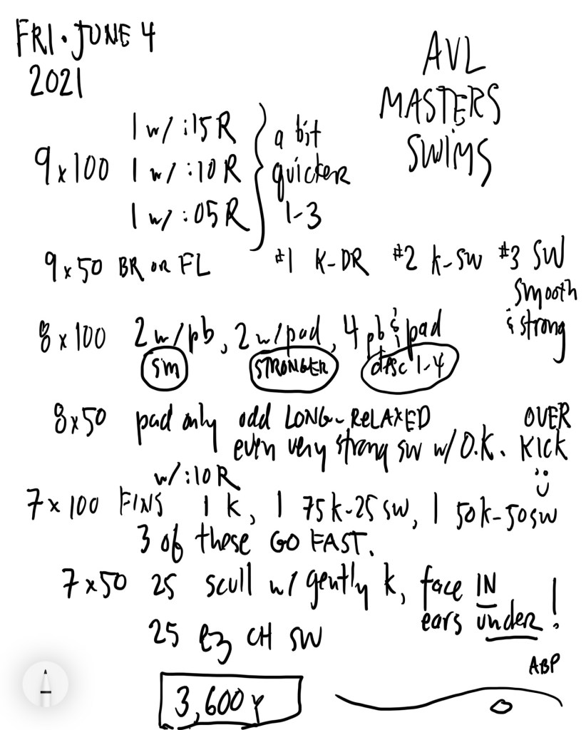 Starting next week, Monday, June 7th we’ll continue here at TCRoberson (with a posted workout on Sunday evening prior to the swim), but Tuesdays and Thursdays we’ll have coached sessions while swimming long course (50meter) at the City of Asheville‘s Rec Park pool from 6:15 to 7:15 AM. Gates open at 6am. I so look forward to coaching y’all!