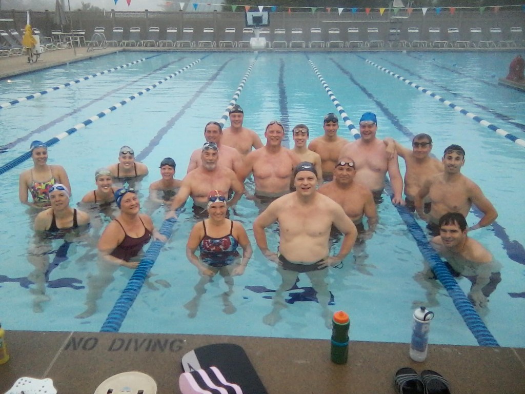Here is a fantastic photo of our morning workout group from 2014 while swimming at the Country Club of Asheville!