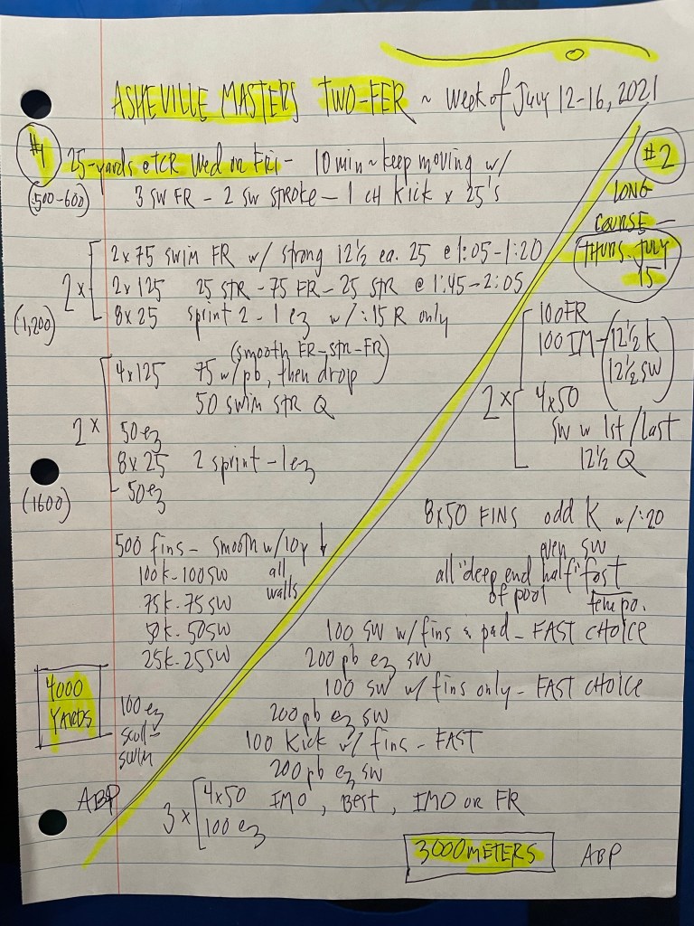 We have a self guided Short Course swim on either Wednesday or Friday (your choice) at TCRoberson H.S. and a Thursday 6:15am Long Course workout at RecPark with Peer led pushes!