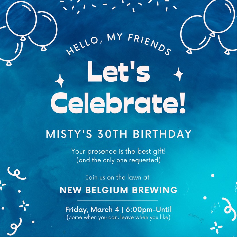 Tonight! Come celebrate Spring and teammate Misty Varnell’s birthday at New Belgium Brewery on their lawn after 5:45PM on Friday, March 4! Wowee!!