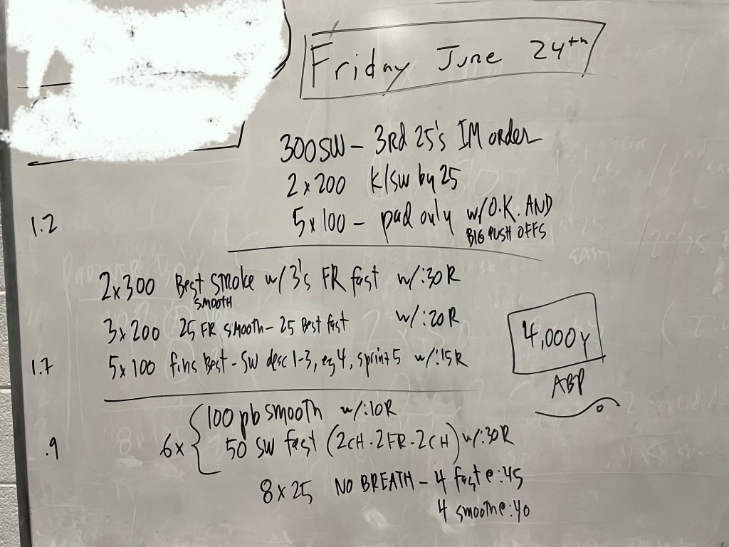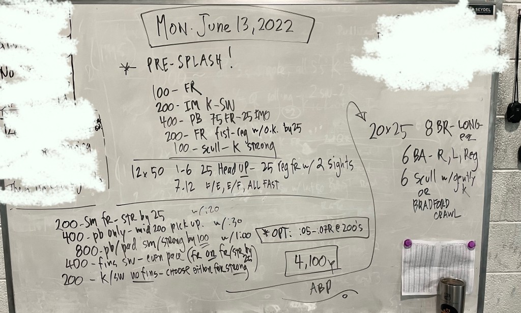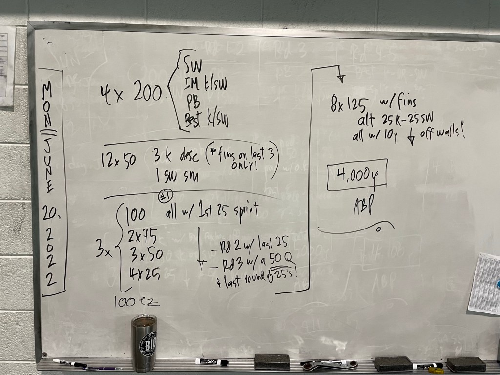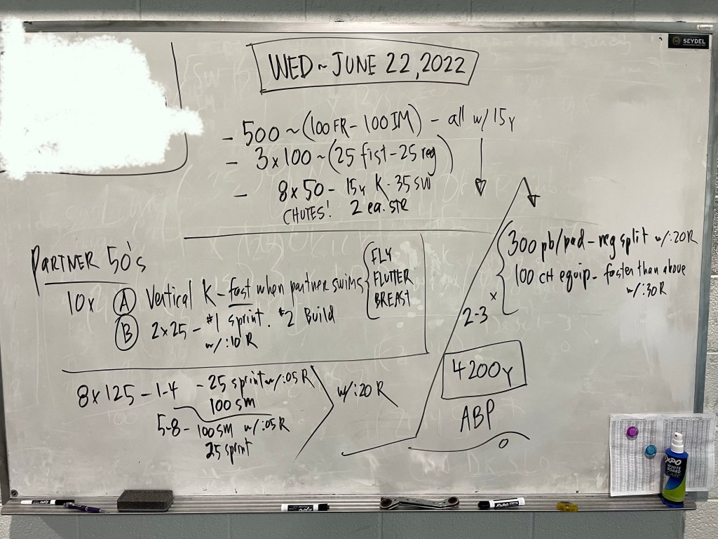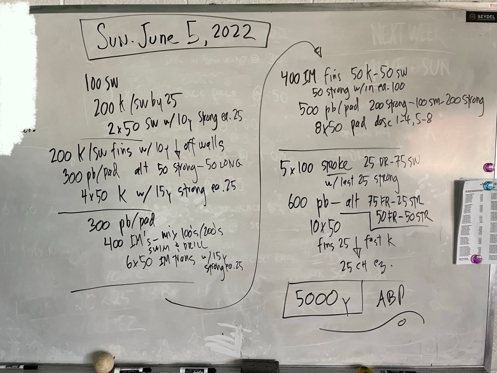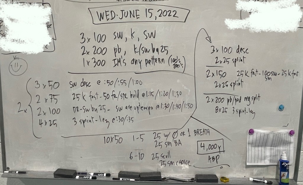 Greetings! Thank you to Kathleen Moore for writing our Sunday work out today (and next week!), we have a lineup of generous swimmers willing to write workouts this week and we thank them in advance!