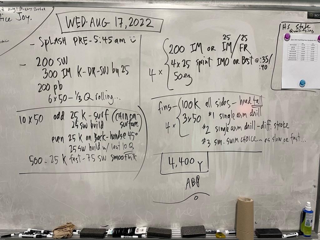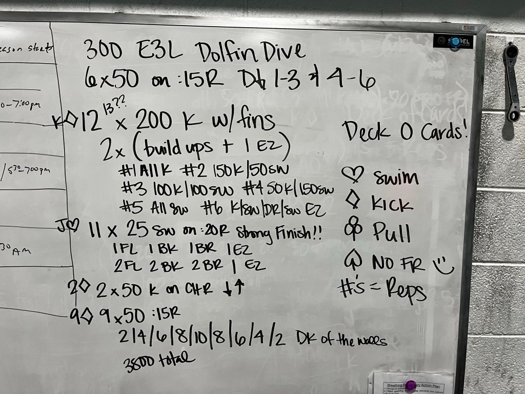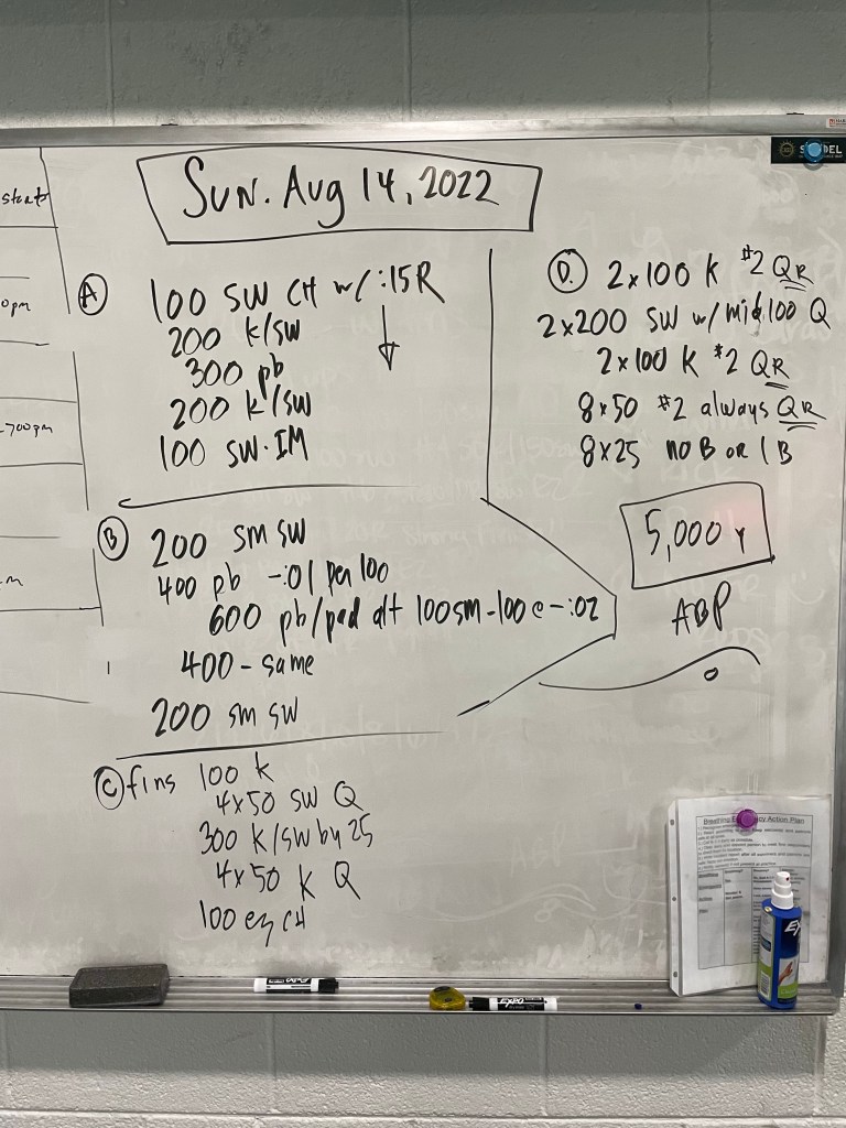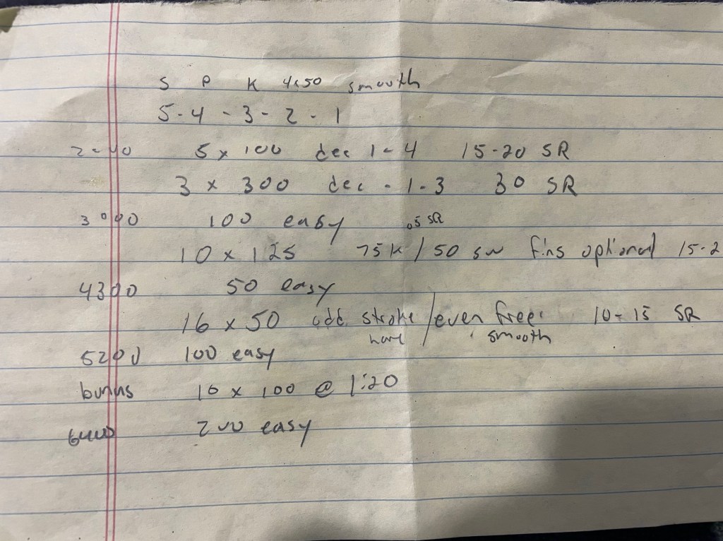 We are glad to have so many new faces and folks training with us, including Rebecca Westfall- back on the pool deck and in the water with us throughout the week, here are the workouts she and I have both written in the last month!