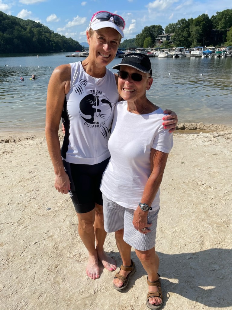 Next weekend Amy went out and got second place in her age group again at the Lake Lure Sprint triathlon, and was cheered on by her sweet mama!