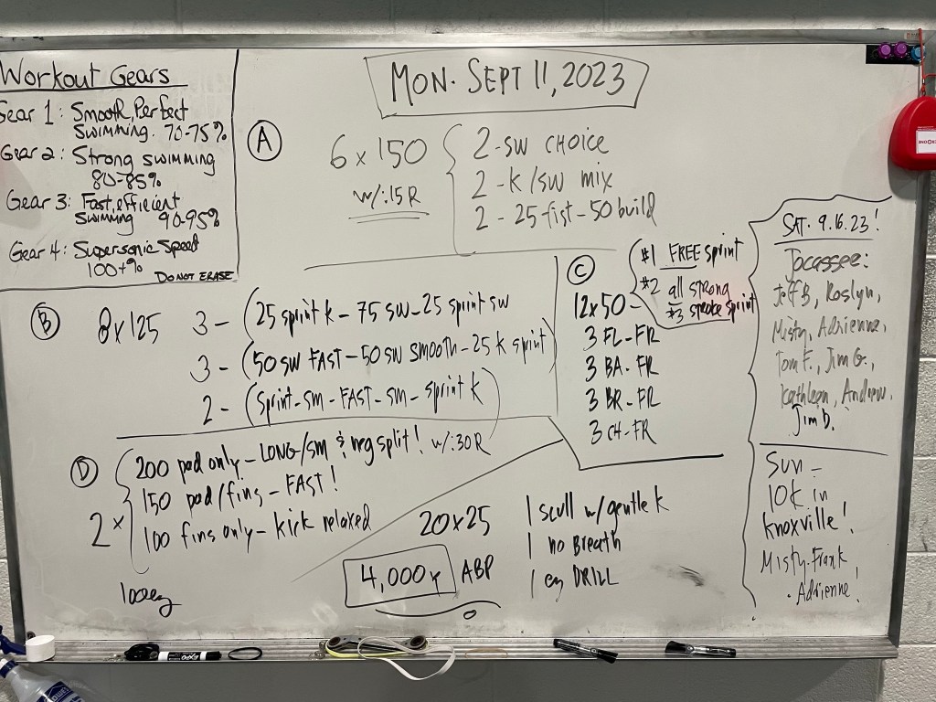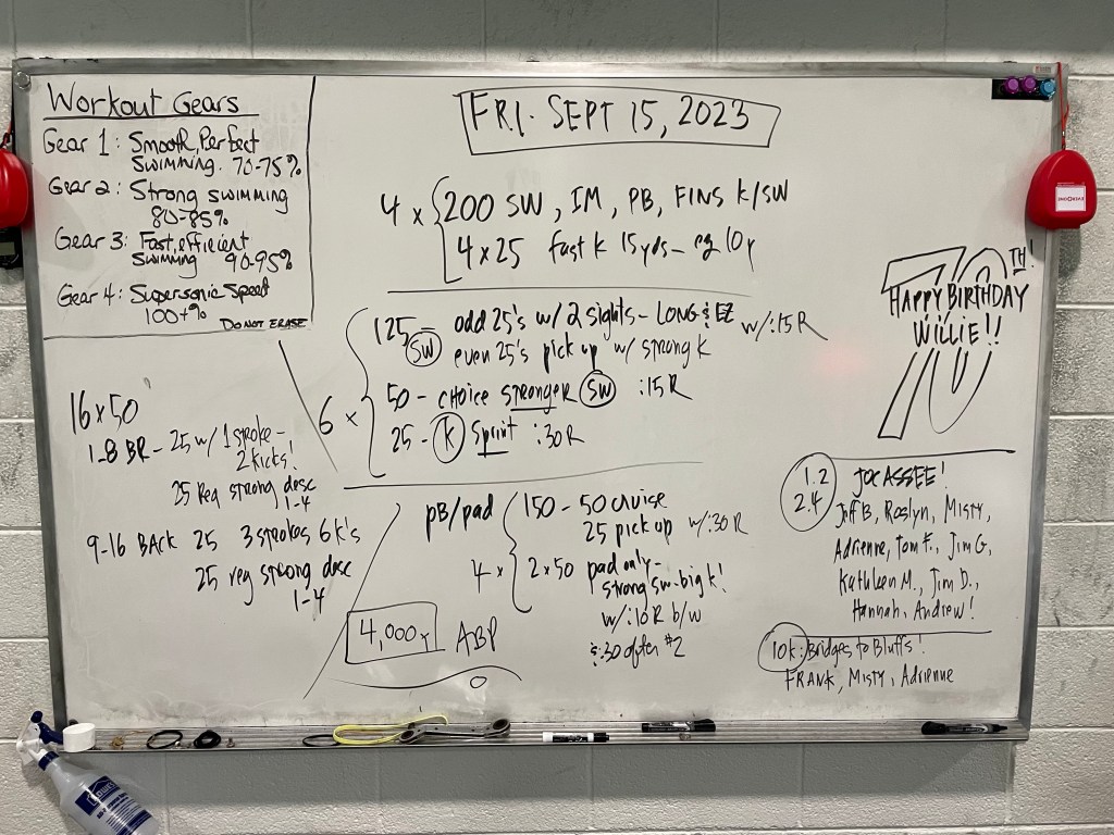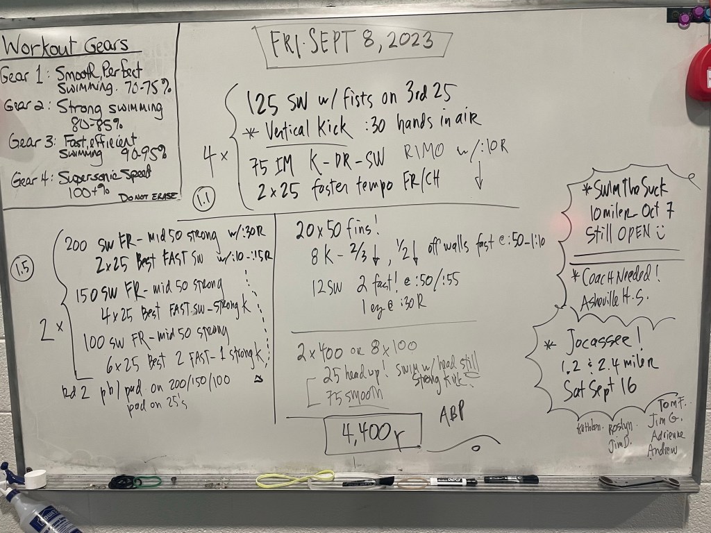 Here are many recent workouts from our Asheville School pool sessions:
