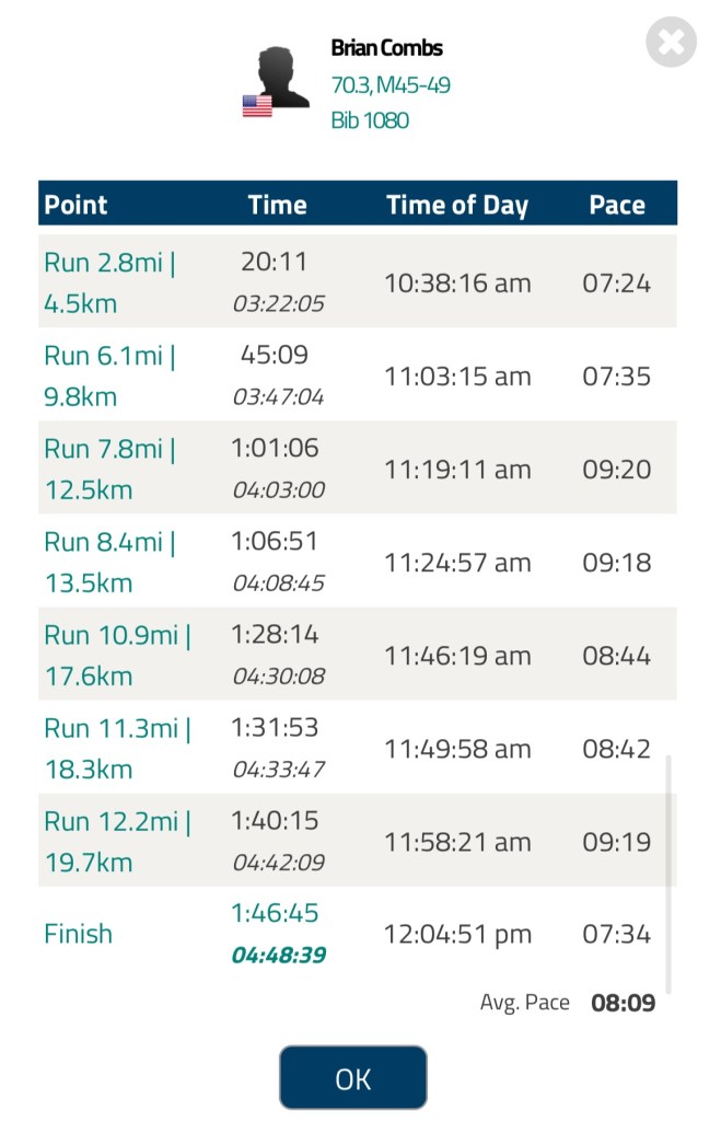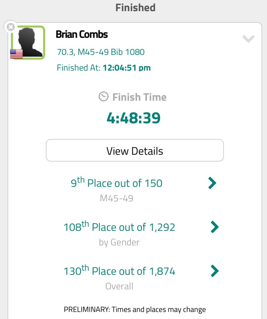 And just a little while ago (September !) our other lane mate Brian Combs raced a personal best in the Augusta (Georgia) Half-Ironman