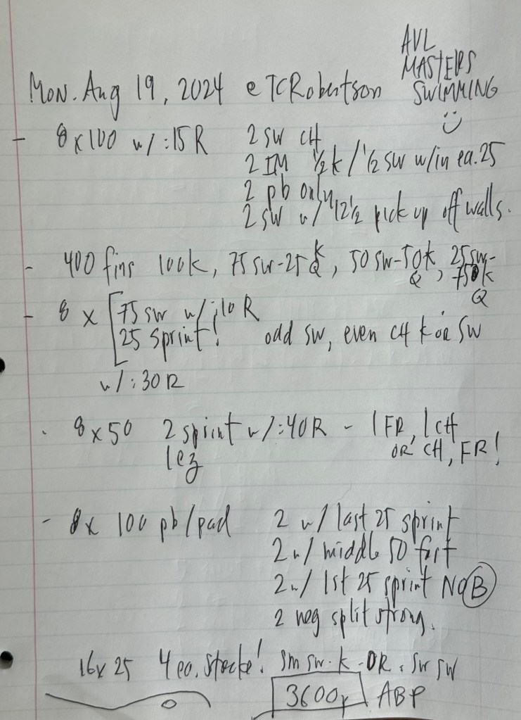 Monday is our only morning at TCRoberson this week, Wednesday and Friday will be at the Town of Black Mountain outdoor 25-yard pool! Details tomorrow.