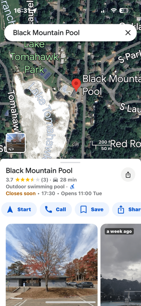 This Wednesday and Friday we have the pleasure of swimming at the Town of Black Mountain’s outdoor 25-yard pool on the edge of Lake Tomahawk from 5:45am-7:15am.