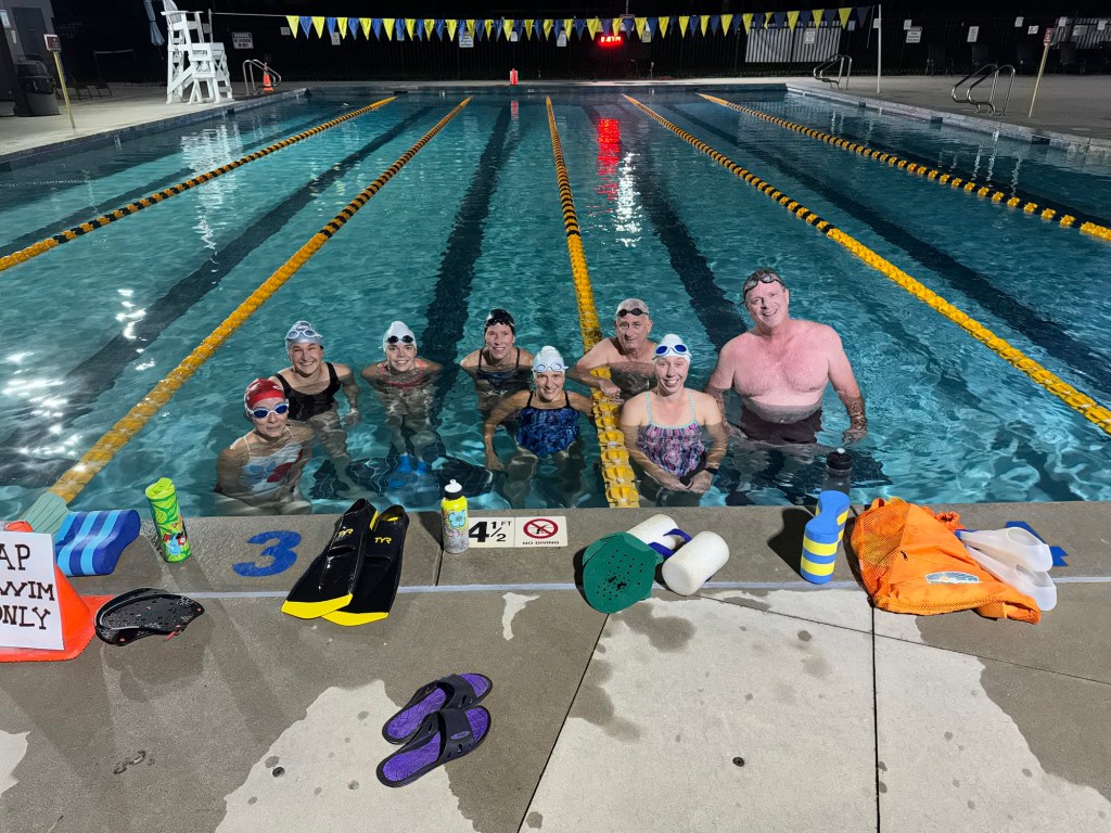 Monday, Wednesday and Friday swims as usual 5:45 AM to 7:15 AM, Andrew coaching Mondays and Fridays, Rebecca’s magic on Wednesdays.