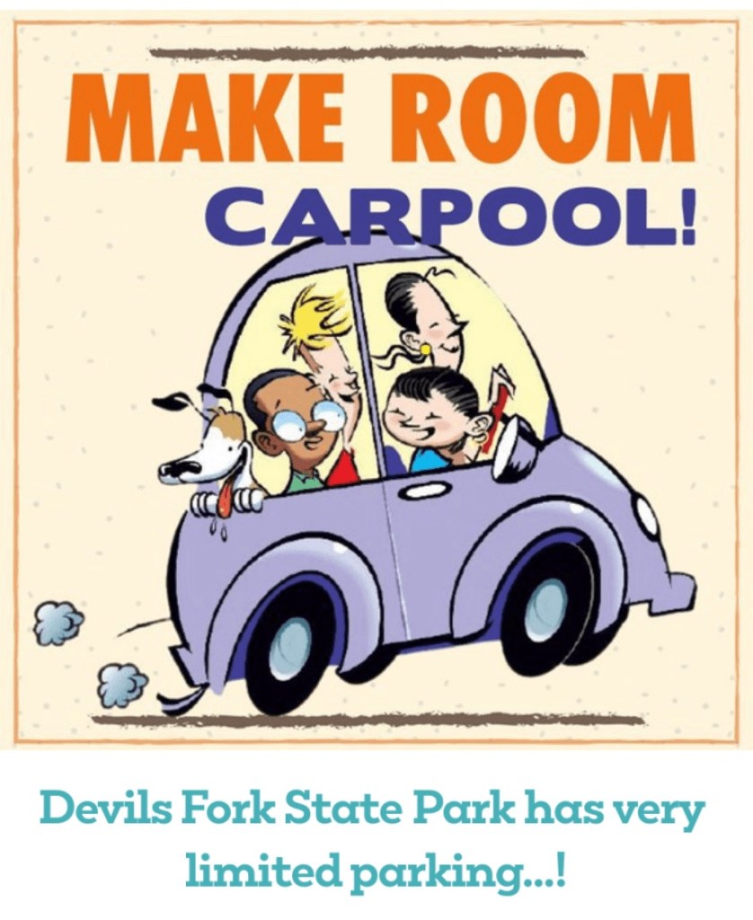 We will all be arriving Saturday at the Devil’s Fork State Park with restrooms, concessions and rentals, and grassy perch to view the beautiful lake. Please look for each other and let’s gather!
