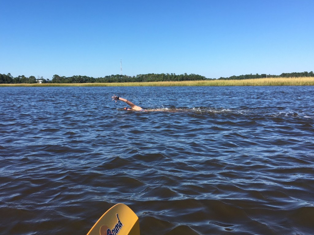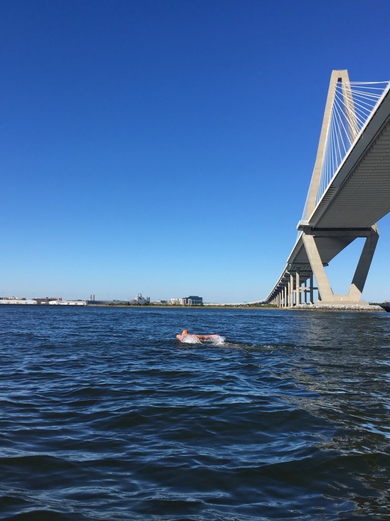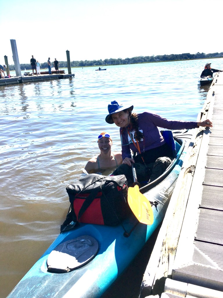 All I can say is Wowwee! Congratulations to Misty Varnell for swimming and Laura Stuck for paddling (and navigating/feeding) the 12.5 miles Swim Around Charleston yesterday, Sunday, October 13!