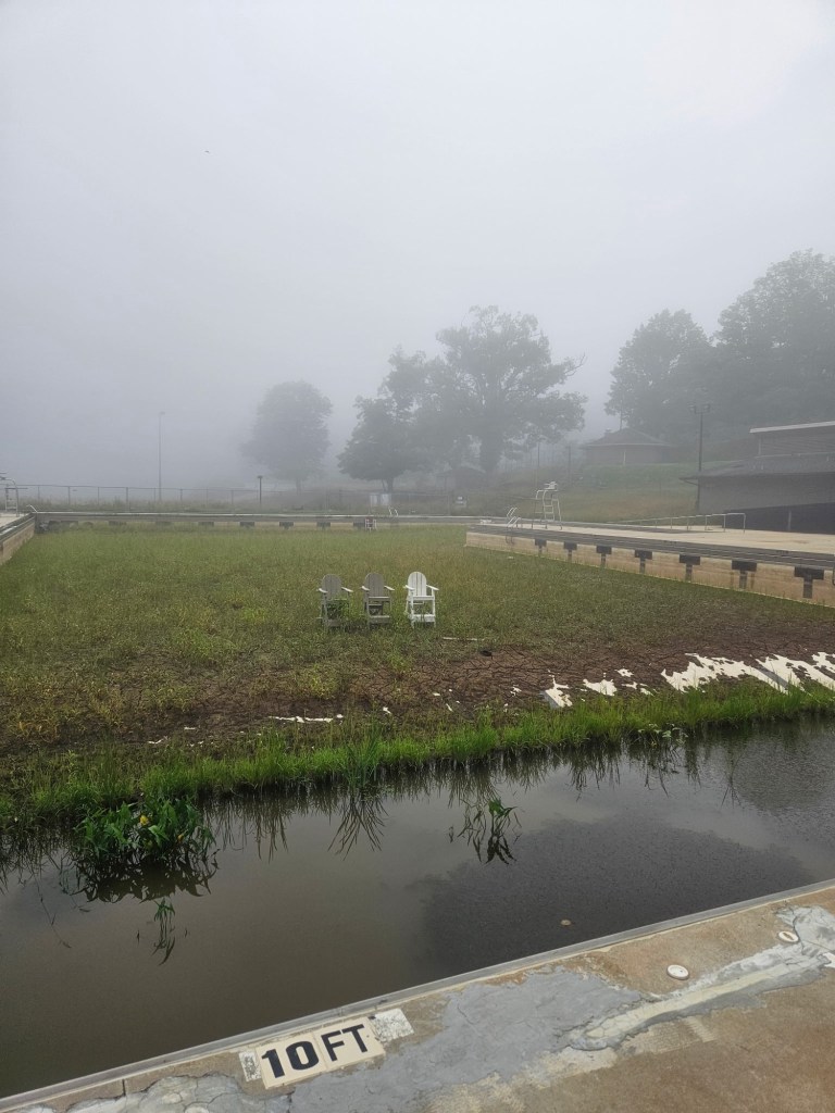 The only 50-meter pool in the Asheville and Buncombe County area along the Swannanoa River was severely damaged during Hurricane Helene last fall. With all of the river that flowed in and over the pool it left lots of fertile sediment on the bottom of the pool, and now it has a beautiful full lawn growing in it.