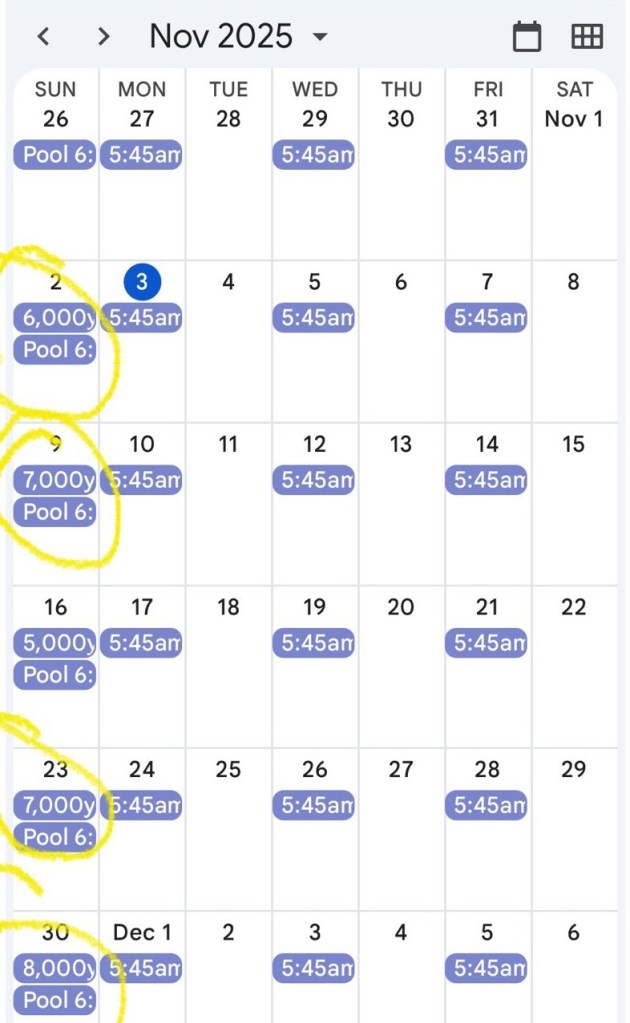 Beginning yesterday, we started a 9+ week push to our New Year’s Day swim, which will include 10,000-yards this year!