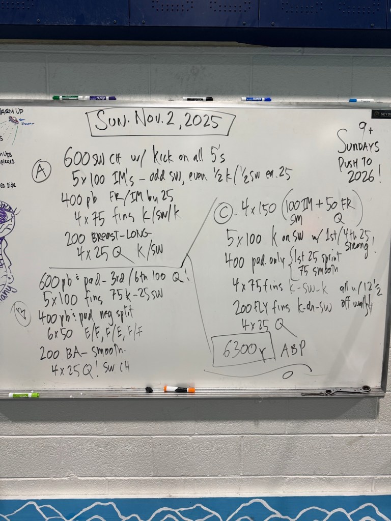 The goal was 6000 yards yesterday so we wrote a little more on the board and the 6300 yard work out looked like this: